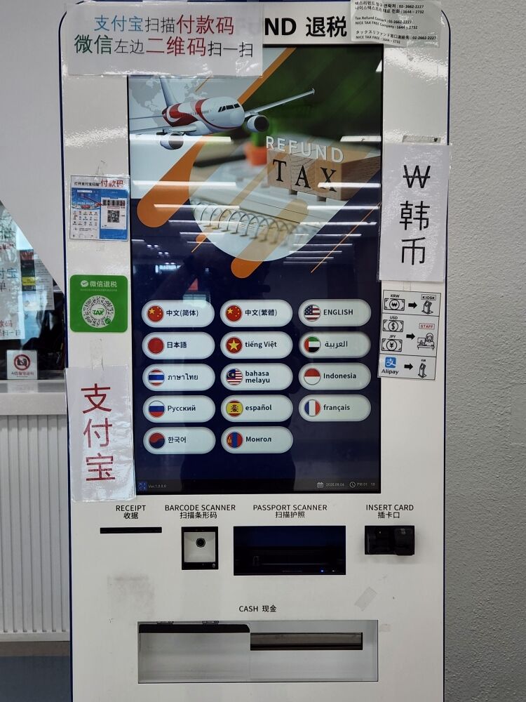 ホテルで登録したパスポートだけをスキャンするだけで還付金(KRW)が受け取れる。